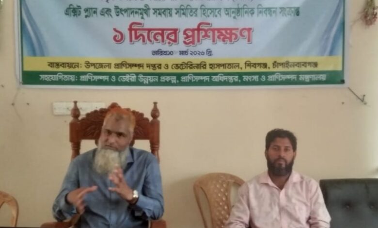 শিবগঞ্জ (চাঁপাইনবাবগঞ্জ) সংবাদদাত: শিবগঞ্জে উপজেলা পর্যায়ে গঠিত প্রডিউসার গ্রুপের এক্সিট প্ল্যান ও উৎপাদনমুখী সমবায় সমিতি হিসেবে আনুষ্ঠানিক নিবন্ধন শীর্ষক দিনব্যাপি প্রশিক্ষণ অনুষ্ঠিত হয়েছে।