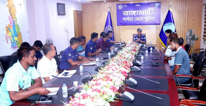 সভায় সভাপতিত্ব করেন রাঙামাটি পার্বত্য জেলার সম্মানিত পুলিশ সুপার ড. এস এম ফরহাদ হোসেন। সভা সঞ্চালনা করেন অতিরিক্ত পুলিশ সুপার (প্রশাসন ও অর্থ) মোঃ ইকবাল হোছাইন, পিপিএম।