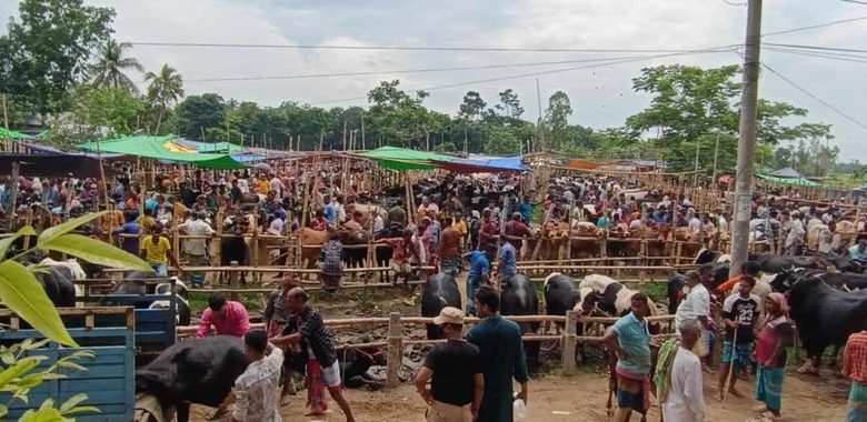 রাসেল আহমেদ সাটুরিয়া প্রতিনিধি: পবিত্র ঈদুল আজহা উপলক্ষে সাটুরিয়ার কোরবানির পশুর হাটগুলোতে এবার চাহিদার তুলনায় প্রায় ৬ হাজার অতিরিক্ত পশু উঠেছে। ফলে হাটে পশুর সরবরাহ বেড়ে যাওয়ায় দাম কমে গেছে। ইতোমধ্যে সাটুরিয়ার বিভিন্ন পশুর হাট জমে উঠতে শুরু করেছে। যেখানে বেপারীরা কেনার চাইতে ১০-১৫ হাজার টাকা কম দামে বিক্রি করতে হচ্ছে। যা খামারি ও বিক্রেতাদের জন্য উদ্বেগের কারণ হয়ে দাঁড়িয়েছে।