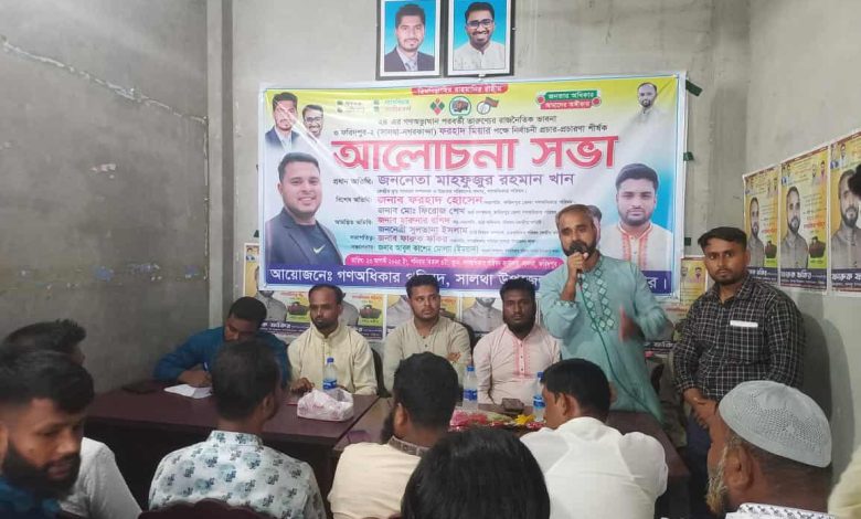 বিধান মন্ডল, ফরিদপুর প্রতিনিধি: ফরিদপুরের সালথায় গণঅধিকার পরিষদের উদ্যোগে এক আলোচনা সভা অনুষ্ঠিত হয়েছে। শনিবার (২৩ আগস্ট) বিকেলে উপজেলা শাখার আয়োজনে সালথা বাইপাস সংলগ্ন উপজেলা কার্যালয়ে এ সভা অনুষ্ঠিত হয়।