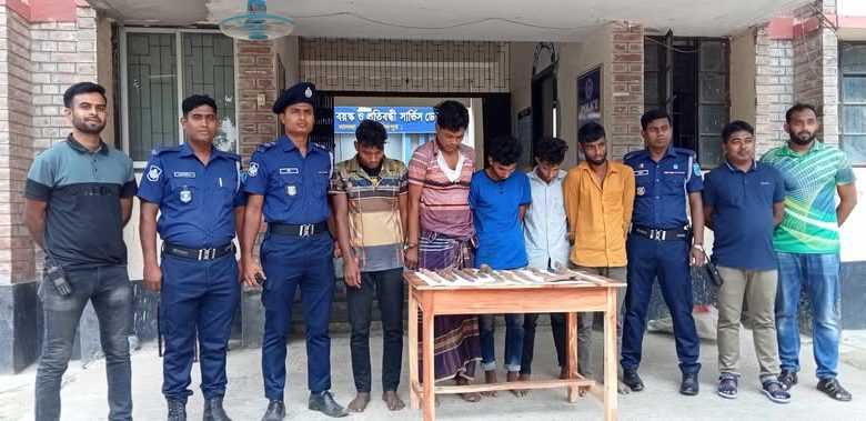 বিধান মন্ডল (ফরিদপুর) প্রতিনিধি: ফরিদপুরের সালথায় দেশীয় অস্ত্রসহ সক্রিয় ডাকাত দলের ৫ সদস্য কে আটক করেছে পুলিশ। বৃহস্পতিবার (১৭ এপ্রিল) ভোর রাতে উপজেলার ভাওয়াল ইউনিয়নের কামদিয়া এলাকা থেকে তাদের আটক করা হয়। আটককৃতরা হলেন, মাসুদ খাঁ (৩০), মনির হোসেন (২৬), লিমন খাঁ (১৯), মো. সাগর মোল্লা (২০) ও মহসীন মাতুব্বর (২৮)। পুলিশ সূত্রে জানা যায় আটককৃতদের মধ্যে মাসুদ খাঁ এর নামে বাংলাদেশের বিভিন্ন থানায় ২৫ টি মামলা রয়েছে ও তার মধ্যে ৫টি মামলায় গ্রেফতারি পরোয়ানা জারি রয়েছে। আটককৃত অপর চারজনের মধ্যে মধ্যে লিমন খাঁ ব্যতিত অন্য তিনজনের বিরুদ্ধে একাধিক মামলার রয়েছে। সালথা থানার ভারপ্রাপ্ত কর্মকর্তা (ওসি) মো. আতাউর রহমান বলেন, বৃহস্পতিবার ভোররাতে গোপন সংবাদের ভিত্তিতে কামদিয়া গ্রামে ডাকাত মাসুদ খাঁ এর বাড়ি থেকে দেশীয় অস্ত্রসহ ডাকাত দলের সক্রিয় ৫জন সদস্যকে আটক করা হয়েছে। এ বিষয়ে আইনগত ব্যবস্থা প্রক্রিয়াধীন রয়েছে