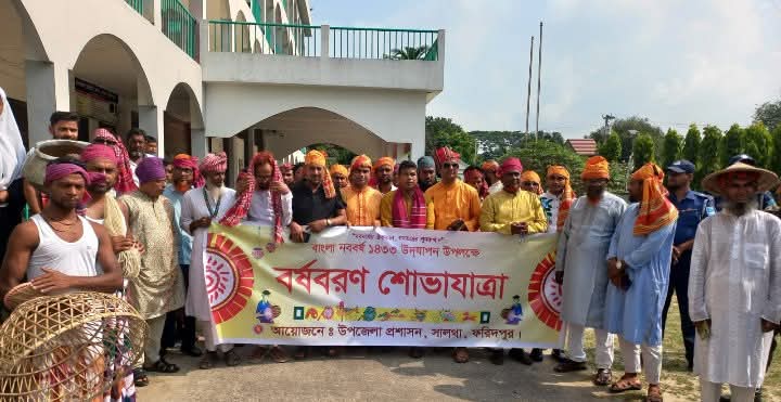 মঙ্গলবার (১৪ এপ্রিল) সকাল ৯টায় উপজেলা প্রশাসনের উদ্যোগে উপজেলা পরিষদ চত্বর থেকে বর্ণাঢ্য শোভাযাত্রা বের হয়ে সালথা বাজারসহ উপজেলার প্রধান প্রধান সড়ক প্রদক্ষিণ করে পুনরায় একই স্থানে এসে শেষ হয়। শোভাযাত্রায় বিভিন্ন শ্রেণি-পেশার মানুষ, শিক্ষক-শিক্ষার্থী ও সাংস্কৃতিক কর্মীরা অংশ নেন। রঙিন ব্যানার, ফেস্টুন ও ঐতিহ্যবাহী সাজে শোভাযাত্রাটি প্রাণবন্ত হয়ে ওঠে। পরে উপজেলা পরিষদের সম্মেলন কক্ষে এক মনোজ্ঞ সাংস্কৃতিক অনুষ্ঠান অনুষ্ঠিত হয়।
