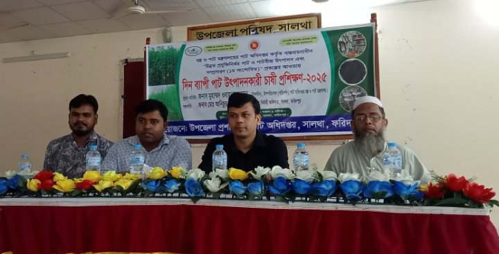 বিধান মন্ডল (ফরিদপুর) প্রতিনিধি: ফরিদপুরের সালথায় বস্ত্র ও পাট মন্ত্রণালয়ের পাট অধিদপ্তর কর্তৃক বাস্তবায়নাধীন “উন্নত প্রযুক্তিনির্ভর পাট ও পাটবীজ উৎপাদন এবং সম্প্রসারণ (১ম সংশোধিত)” প্রকল্পের আওতায় দিনব্যাপী পাট উৎপাদনকারী চাষী প্রশিক্ষণ কর্মশালা ২০২৫ইং অনুষ্ঠিত হয়েছে। বুধবার (৩০ এপ্রিল) দিনব্যাপী উপজেলা প্রশাসন ও পাট অধিদপ্তর সালথা এর আয়োজনে উপজেলা পরিষদের সম্মেলন কক্ষে এই পাটচাষী প্রশিক্ষণ কর্মশালা অনুষ্ঠিত হয়। এ সময় উপজেলার ৮টি ইউনিয়ন হতে ৭৫জন পাটচাষী প্রশিক্ষণে অংশ নেয়।