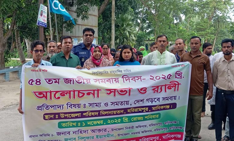 নাজমুল চৌধুরী, হরিরামপুর প্রতিনিধি: “সাম্য ও সততার দেশ গড়ব সমবায়ে” এই প্রতিপাদ্য নিয়ে মানিকগঞ্জের হরিরামপুরে উৎসবমুখর পরিবেশে পালিত হয়েছে ৫৪তম জাতীয় সমবায় দিবস ২০২৫। শনিবার (১ নভেম্বর) সকাল ১১টায় উপজেলা কমপ্লেক্স প্রাঙ্গণে জাতীয় পতাকা উত্তোলনের মাধ্যমে দিবসের আনুষ্ঠানিক উদ্বোধন করা হয়। পরে এক বর্ণাঢ্য র্যালি বের করা হয়, যা উপজেলা চত্বর প্রদক্ষিণ করে শেষ হয়।