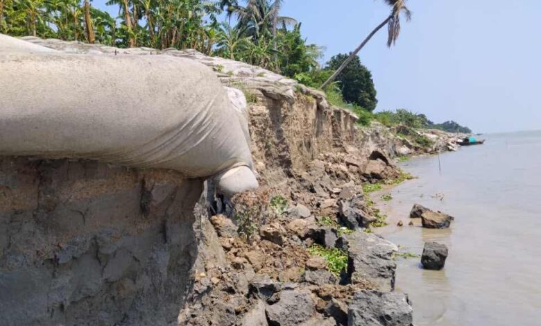 স্থানীয় বাসিন্দারা জানান,প্রতিবারের ন্যায় এ বছরও বর্ষার শুরু না হতেই ব্যাপক হারে ভাঙন দেখা মিলছে এবং হুমকির মুখে কোটি টাকার জিওব্যাগ।