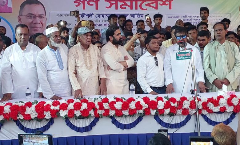 গণসমাবেশে সাবেক এমপি প্রকৌশলী মোহাম্মদ ফজলুল আজিম বলেন, ১৭ বছর ধরে তারেক রহমান স্বৈরাচারের বিরুদ্ধে লড়াই করে দলকে শক্তিশালী করেছেন। তাই তার প্রতি সমর্থন জানিয়ে বলেন, ইতোমধ্যে বাংলাদেশের প্রায় সব গুলো সীটে অস্থায়ী ভাবে নাম ঘোষণা করা হয়েছে। হাতিয়ার জন্য আপনারা সবাই ক্ষুব্ধ, আমিও ক্ষুব্ধ বটে। কিন্তু আপনারা অতীতে আমার পাশে যেভাবে ছিলেন সেভাবে যদি থাকেন তাহলে আমরা সফল হবে। আর আমার অবর্তমানে আমার ছেলেকে ভালবাসা দিবেন। তিনি আগামী সংসদ নির্বাচনে তার ছেলে প্রকৌশলী মোহাম্মদ ফারহান আজিমকে সকলে সহযোগিতা করার অনুরোধ জানান।