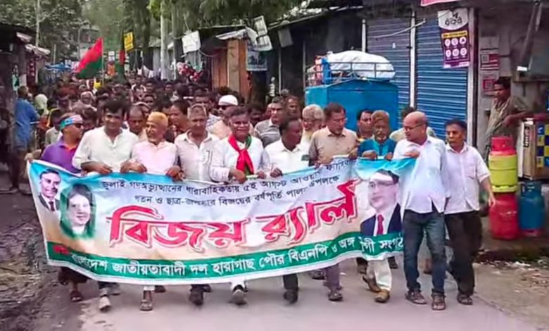 হারাগাছে ৫ আগস্ট ফ্যাসিবাদ পতনের বর্ষপূর্তিতে বিজয় র‌্যালি