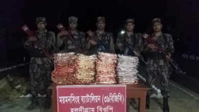 ঝিনাইগাতী সীমান্তে প্রায় ৫ লক্ষ টাকার ভারতীয় শাড়ি জব্দ