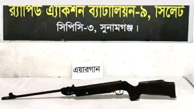আমির হোসাইন সুনামগঞ্জ প্রতিনিধি: সুনামগঞ্জের বিশ্বম্ভরপুর উপজেলায় বিশেষ অভিযানে পরিত্যক্ত অবস্থায় একটি এয়ারগান উদ্ধার করেছে র্যাপিড অ্যাকশন ব্যাটালিয়ন (র্যাব)-৯। সোমবার…