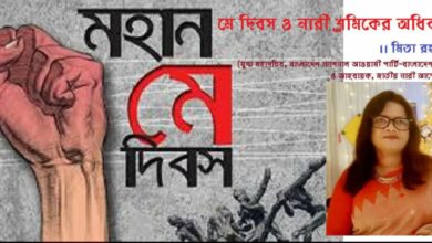 মিতা রহমান : ১ মে, মে মাসের প্রথম দিন। যা মহান ‘মে দিবস’ হিসাবে বিশ্বে পরিচিত। বঞ্চিত, লাঞ্ছিত এবং অধিকারহারা…